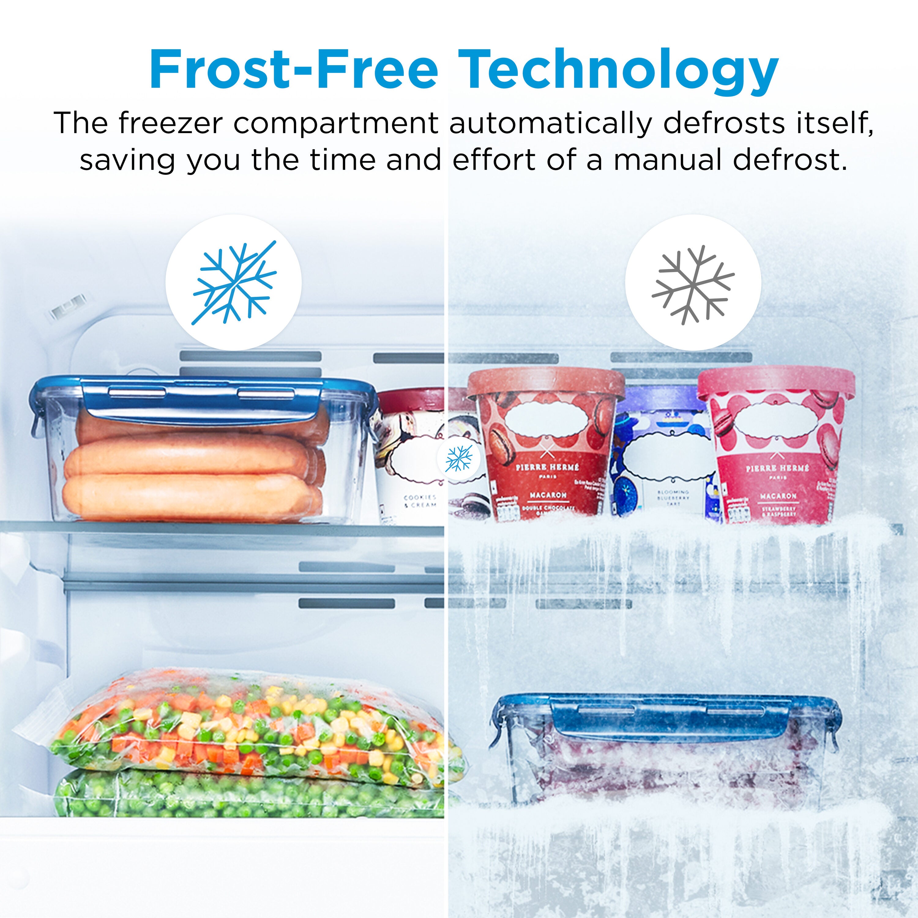 • Frost-Free Technology: The freezer compartment automatically defrosts itself, saving you the time and effort of a manual defrost.