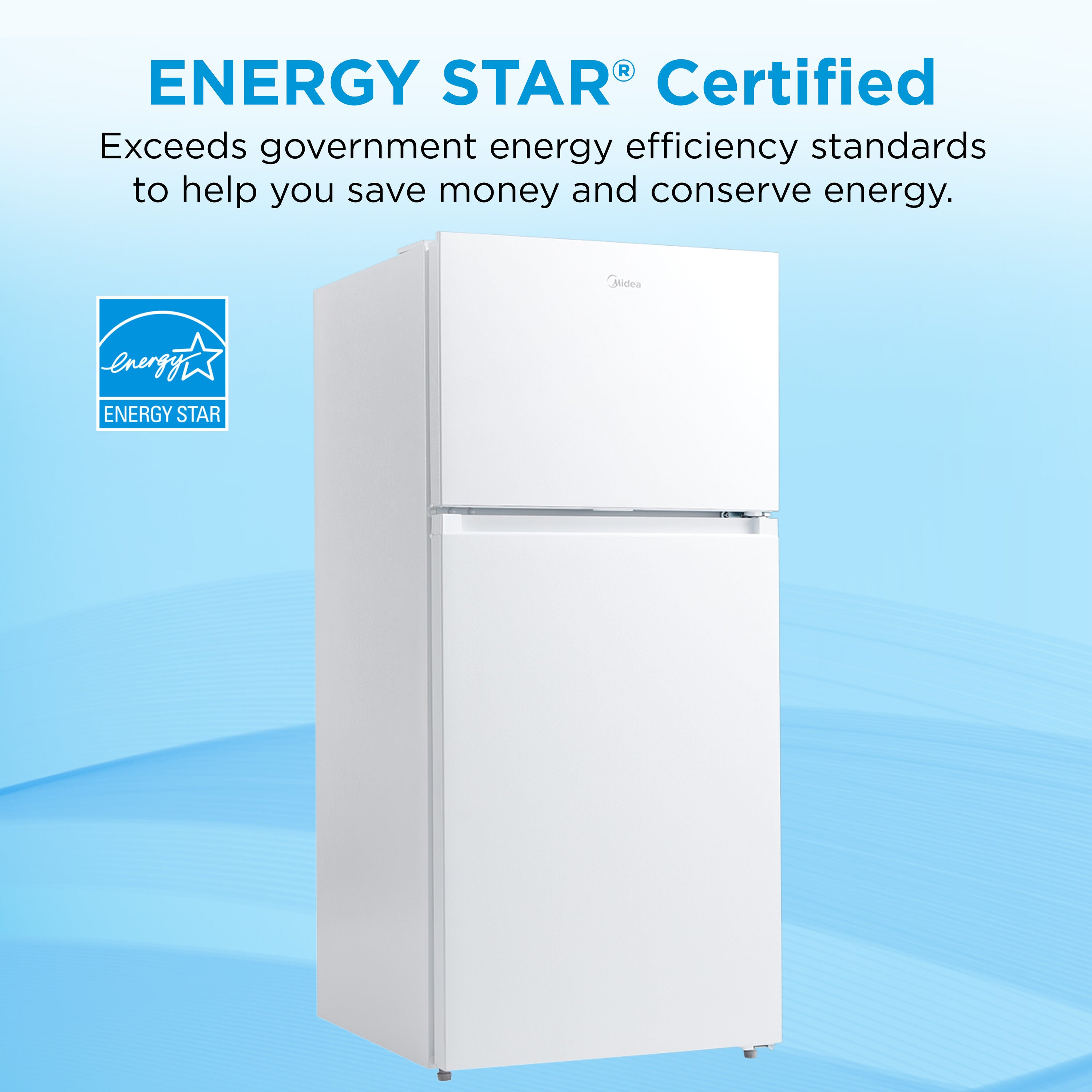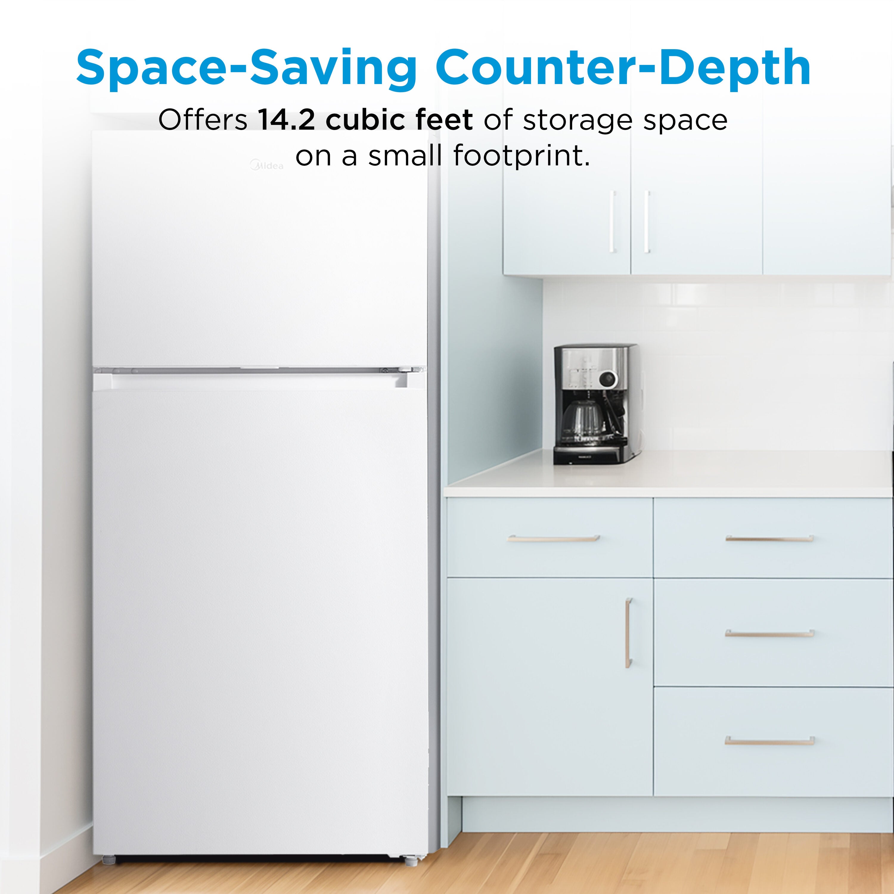 • Midea Fingerprint Resistant 14.2-cu ft Counter-Depth Top-Freezer Refrigerator ( White ) Garage Ready ENERGY STAR Certified