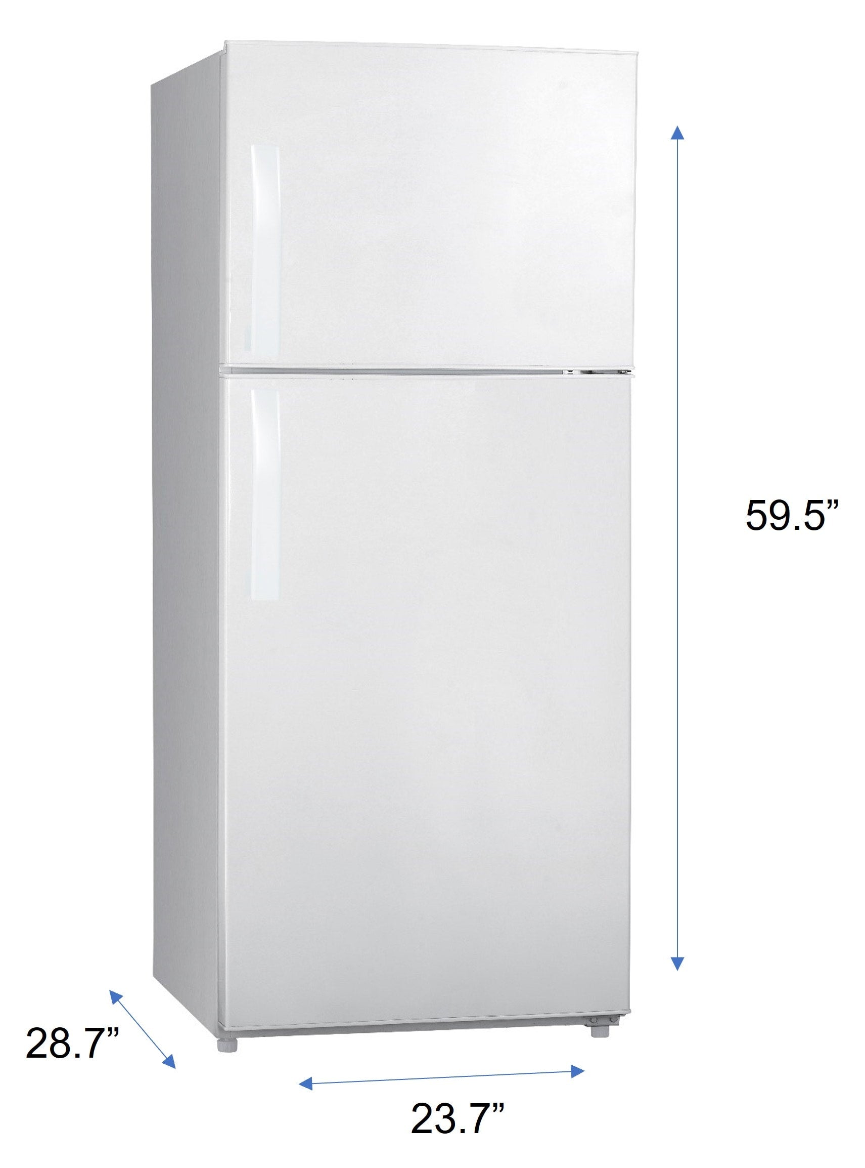 The refrigerator has 8.4 cu ft of fresh food storage space, and the freezer has 3.2 cu ft of frozen food storage space