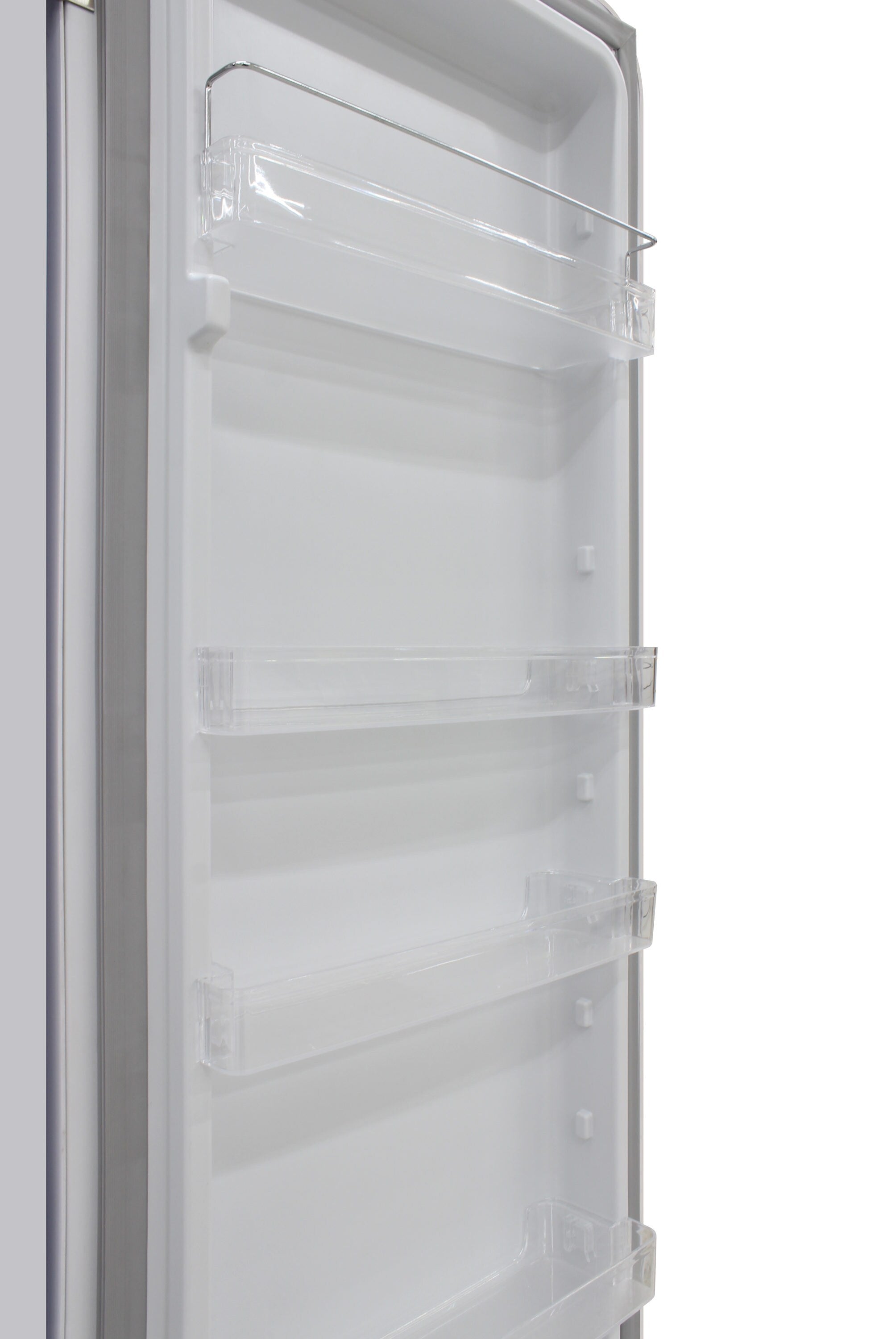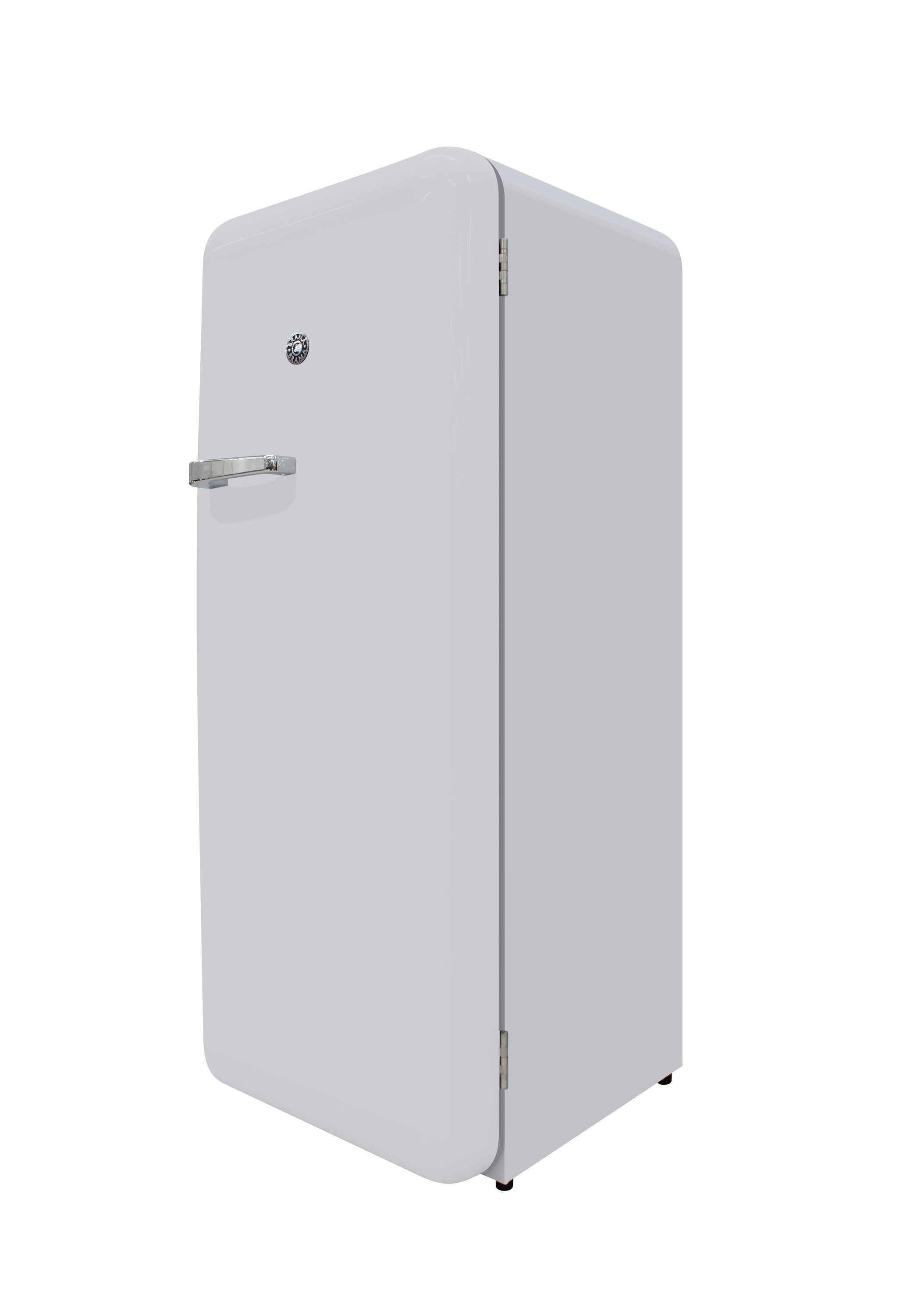 Keep all of your goods at the perfect serving temperature with the Brama Retro Refrigerator. This unit features a top freezer, interior light, open storage with 4 pull-out shelves including one metal wire racking, bottom bulk storage, and 4 rows of small storage behind the door. The white, rounded exterior with solid steel door gives a retro and modern look and makes a perfect addition to to any space.