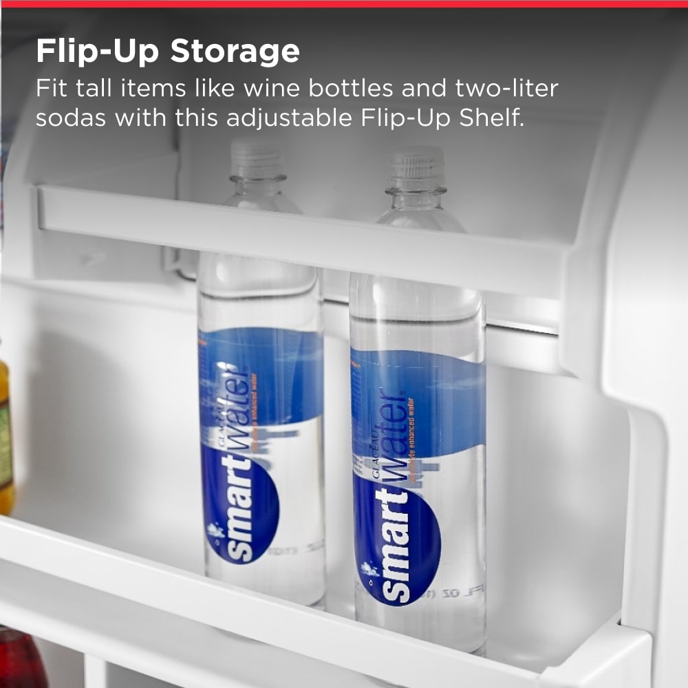 Fit tall orders like wine bottles and two-liter sodas with the adjustable Flip-Up Shelf