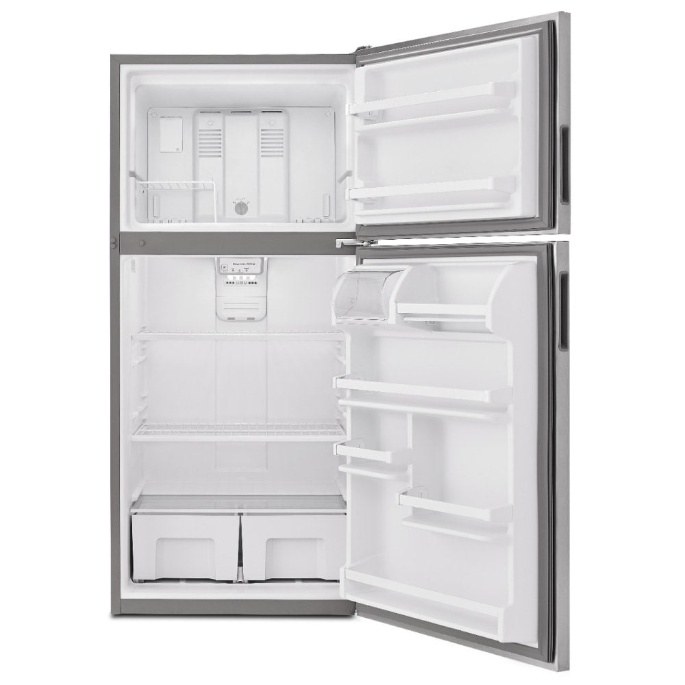 Experience the benefit of Garden Fresh™ Crisper Bins. This Amana® Top- Freezer Refrigerator comes with humidity-controlled, Garden Fresh™ Crisper Bins that help greens stay green, so you can spend less time doing grocery runs. Plus, you can fill your fridge just how you like it with the Gallon Door Storage Bins and the adjustable Flip-Up Storage Shelf.