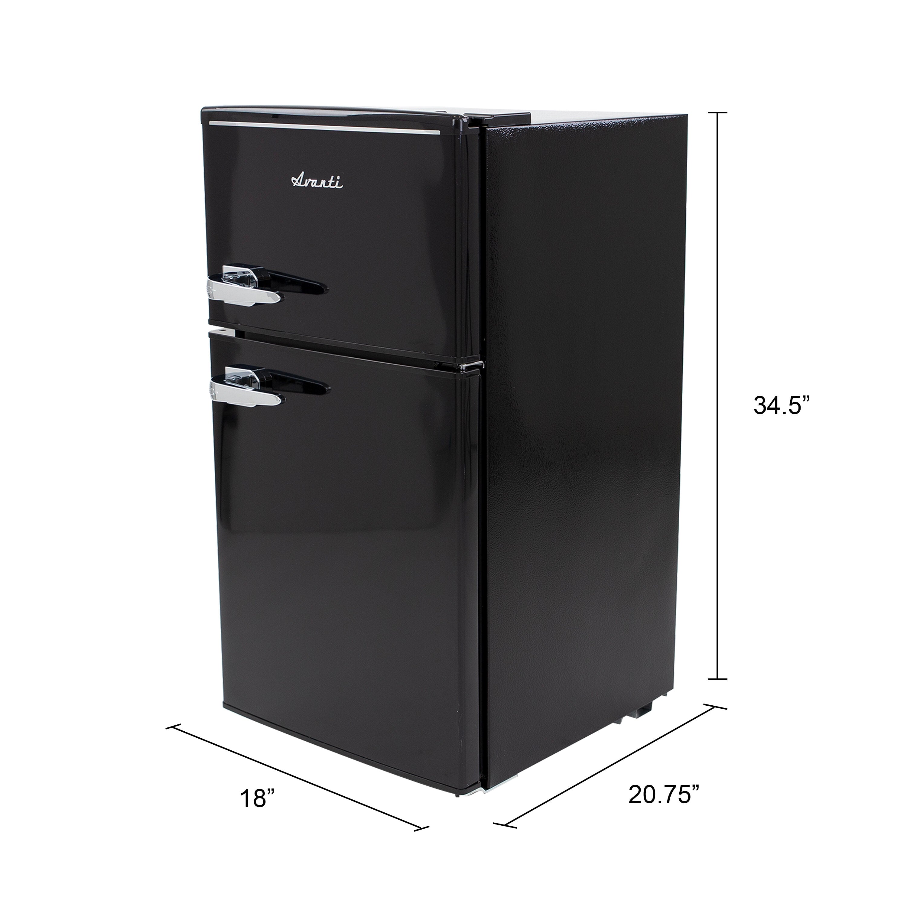 This retro-inspired compact refrigerator combines vintage charm with modern functionality, delivering a cool, colorful, and sophisticated aesthetic that enhances any setting. With a capacity of 3.0 cubic feet, this double-door freezer/refrigerator is the perfect space-saving solution for your home, dorm room, office, or recreational area. Its thoughtful design ensures that your favorite foods and beverages are always within reach, making it an ideal addition to small spaces where style and practicality matter most. The double-door design offers convenient access to all your essentials. The top freezer section provides ample space for storing frozen foods in bulk, helping you save money by reducing trips to the store. Meanwhile, the refrigerator section is designed to keep salads, fruits, snacks, and beverages fresh and easily accessible throughout the day. The manual defrost system allows you to maintain optimal cooling performance with minimal effort, giving you full control over the unit's temperature settings. Storage is made simple with built-in door shelves and a beverage can dispenser. The door design accommodates a variety of items, including two-liter bottles, assorted condiments, and up to six 12-ounce cans, ensuring that your fridge stays organized and functional. Inside, two adjustable and removable glass shelves provide versatility in food storage, allowing you to customize the layout to suit your needs. These glass shelves are easy to clean and provide a clear view of your food items for added convenience. The fridge is equipped with mechanical temperature controls, allowing you to adjust the cooling settings quickly and easily with the turn of a dial. This feature ensures that your food and beverages are stored at the perfect temperature for maximum freshness. The retro-inspired exterior design adds a chic and timeless touch, making this compact fridge not only a practical appliance but also a stylish focal point in any room. Backed by Avanti's 1-year manufacturer-limited warranty, this refrigerator offers reliability and peace of mind. Whether you’re looking to enhance your kitchen, upgrade your dorm, or add convenience to your office space, this compact fridge delivers on all fronts. Its combination of retro style, modern features, and compact efficiency makes it a standout choice for those who value both form and function.