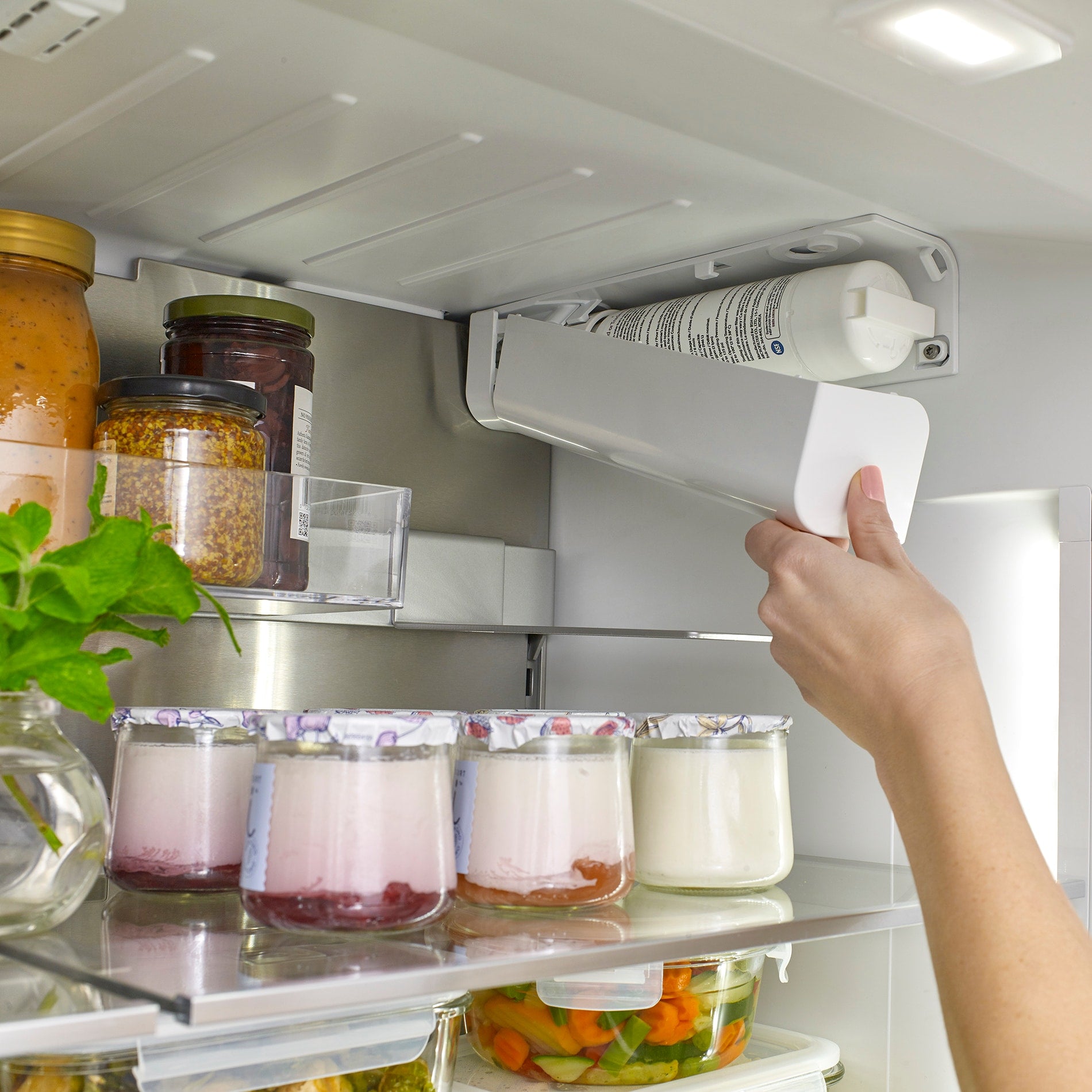 Thoughtfully tucked away is the internal water dispenser for refreshing, pure water at the touch of a button, or push of a nozzle, without disrupting the exterior design