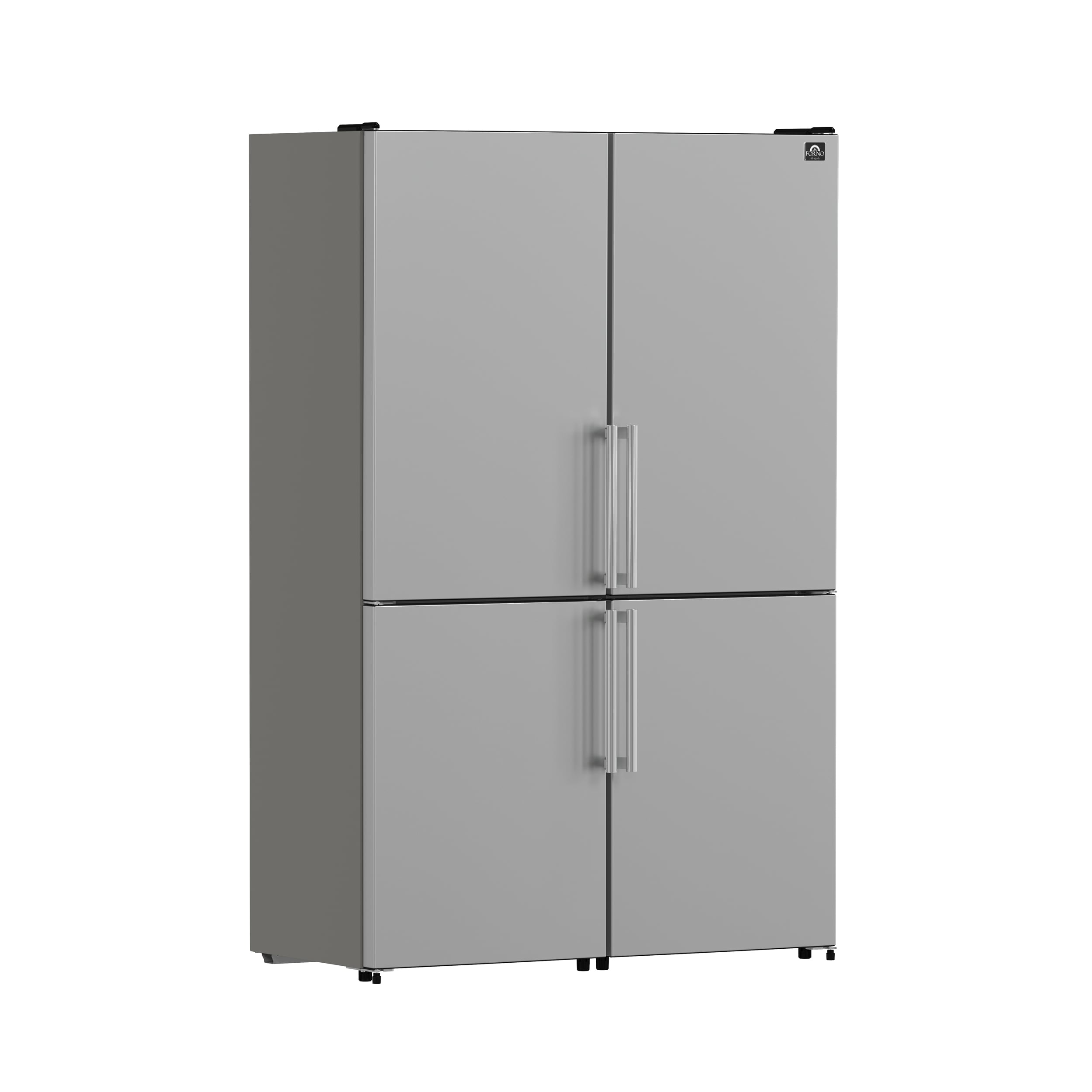 The Forno Guardia 46.8 Inch side-by-side refrigerator combines two 23.4 Inch Guardia units, creating a spacious design perfect for kitchens of any size. This arrangement offers ample storage capacity and versatility, catering to diverse storage needs. Its sleek stainless steel appearance ensures seamless integration into your kitchen decor. With a doubled total storage capacity of 21.6 cu.ft., the fresh food compartment provides an impressive 14.8 cu.ft. of space, now equipped with six glass shelves, two deli drawers, and two humidity control crisper drawers. Meanwhile, the freezer compartment now offers 6.8 cu.ft. of storage, boasting six large drawer baskets that are easy to remove and clean, providing ample storage for frozen goods. Notably, the freezer also includes a Super Freeze function, maintaining groceries at the ideal temperature while conserving energy effectively. Furthermore, the appliance remains ENERGY STAR Certified for efficiency, and its high-efficiency LED lighting continues to reduce food spoilage. Enjoy top-notch quality and performance with Forno's spacious and reliable appliances, enhancing your kitchen experience without compromising on efficiency.