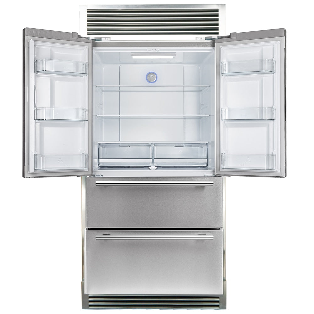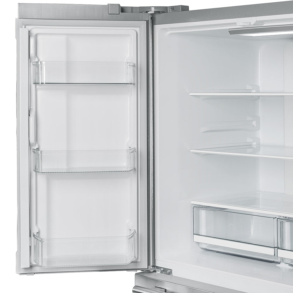 Fresh food compartment includes 3 glass shelves, 6 door bins and 2 drawers