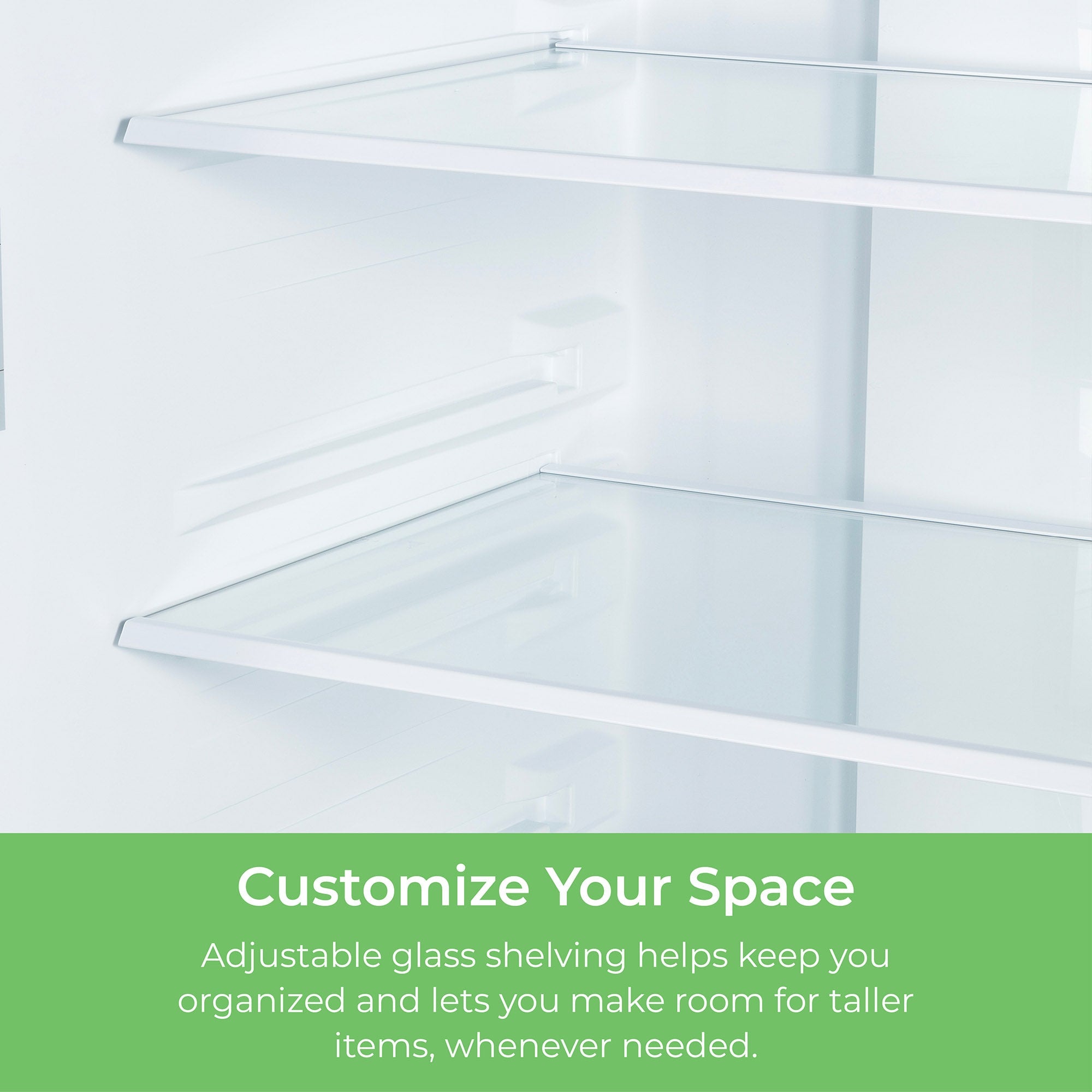 • Adjustable full-width glass shelves